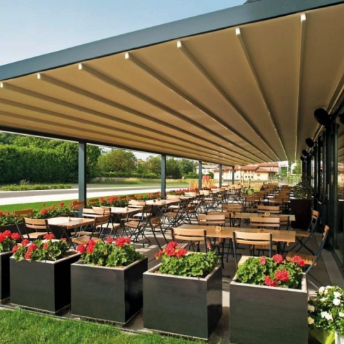 Sus óptimas prestaciones y grandes dimensiones hacen de nuestros techos móviles y fijos la opción perfecta para crear nuevos espacios en hoteles, restaurantes y grandes negocios.