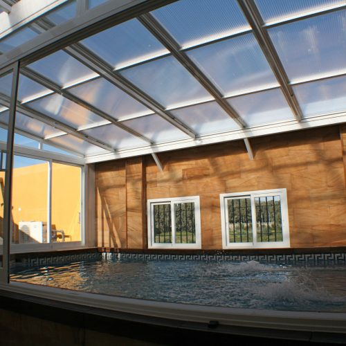 Las guías extra reforzadas nos permiten realizar cubiertas hasta 20m de ancho con posibilidad de apertura del techo a 90%.